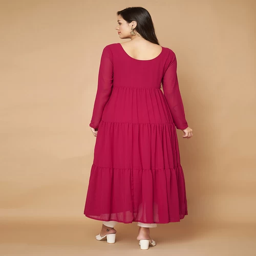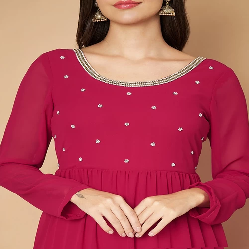 Women Pink Georgette Embroidery Tiered Anarkali Kurta || 5M85VD