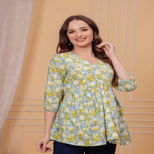 or entirely from cotton fabric. Known for its breathability, and versatility, cotton top come in various styles. The fabric's natural fibers make it soft against the skin and allow for good airflow, making cotton ideal for both casual wear and more formal occasions depending on their design and detailing. top for summer, summer top, crop top, top for woman/girls, styles top, designer top, western wear top, casual top, summer top for girls, grey top, v neck top, dress for girls, long top, party wear top, western wear to