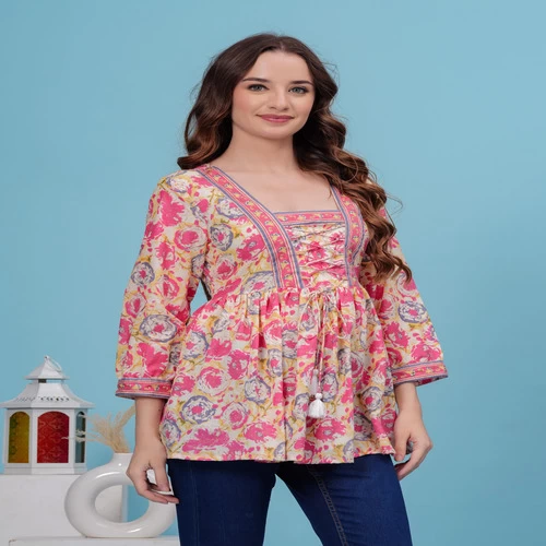 or entirely from cotton fabric. Known for its breathability, and versatility, cotton top come in various styles. The fabric's natural fibers make it soft against the skin and allow for good airflow, making cotton ideal for both casual wear and more formal occasions depending on their design and detailing. top for summer, summer top, crop top, top for woman/girls, styles top, designer top, western wear top, casual top, summer top for girls, grey top, v neck top, dress for girls, long top, party wear top, western wear to