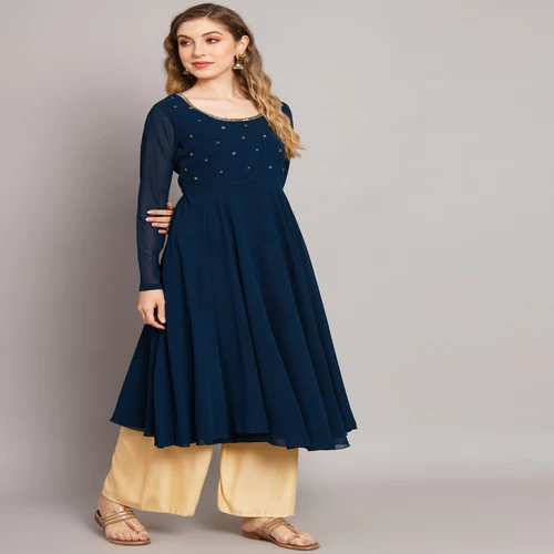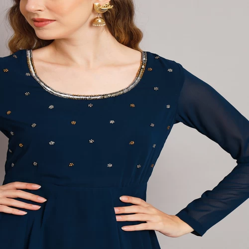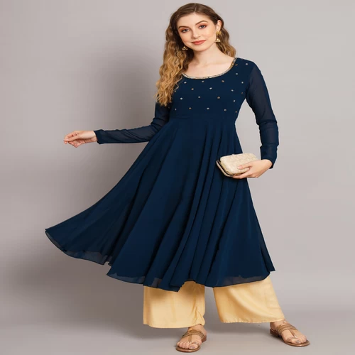 Women Teal Blue Georgette Hand Embroidery Anarkali Kurta || S49G0M